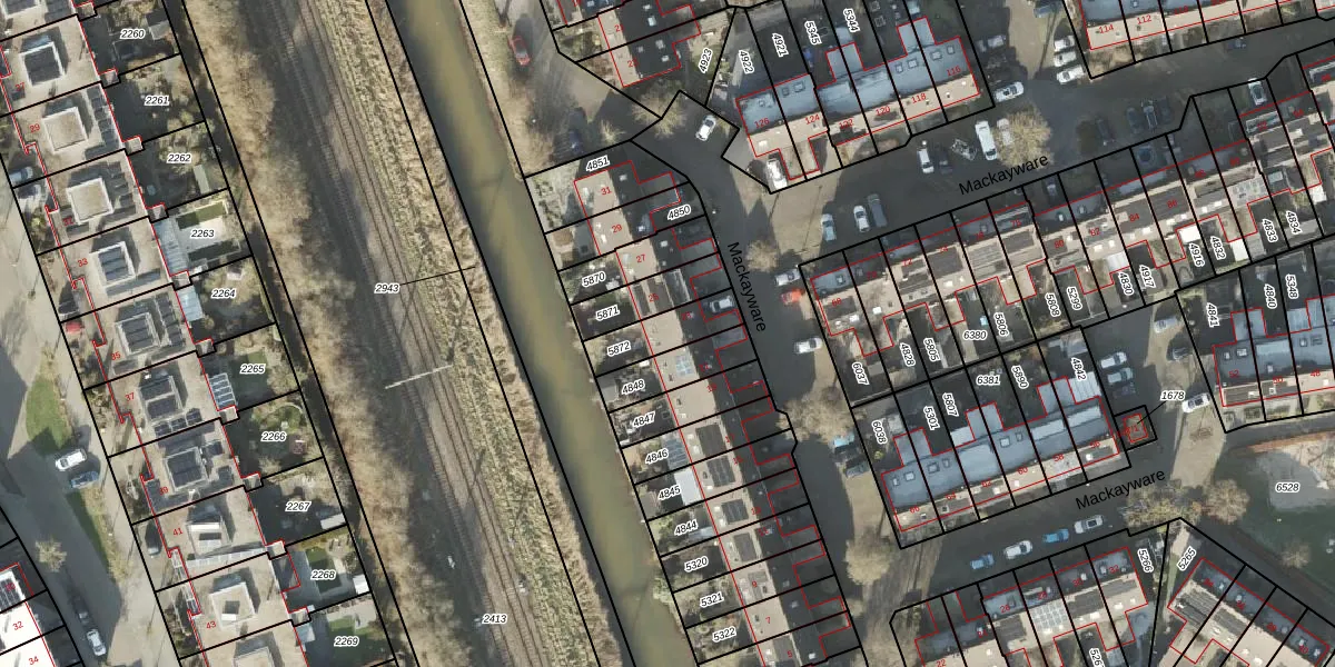 Het perceel waarop Mackayware 23 staat heeft een oppervlakte van 136 m². Dit is een middelgroot perceel. De perceeloppervlakte wordt geregistreerd door het Kadaster. Gedetailleerde informatie over de maten van dit perceel kunt u vinden in het rapport Kadastrale kaart met maatvoering van Mackayware 23.