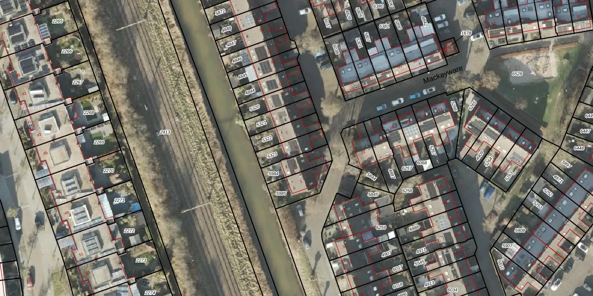 Gebruik de zoekbalk of klik op een perceel voor informatie over de adressen binnen dit perceel.