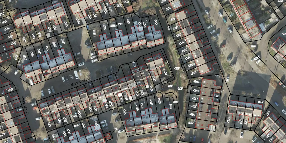 Gebruik de zoekbalk of klik op een perceel voor informatie over de adressen binnen dit perceel.