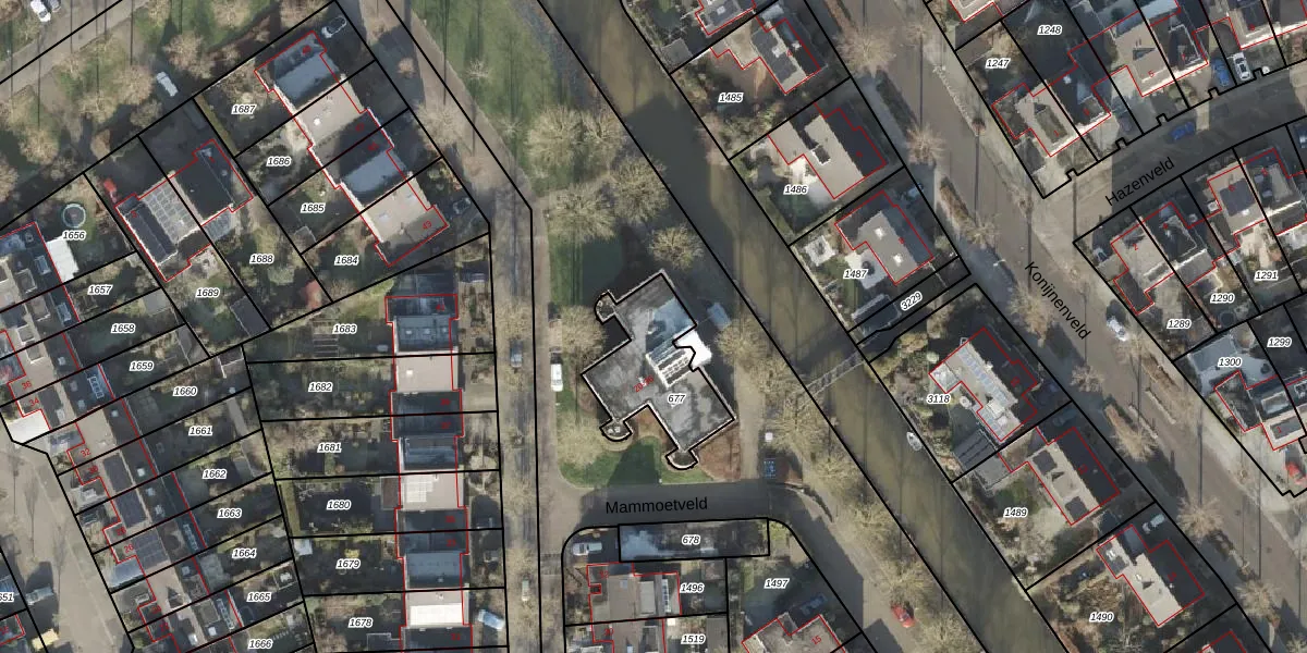 Het perceel waarop Mammoetveld 22 staat heeft een oppervlakte van 333 m². Dit is een groot perceel. De perceeloppervlakte wordt geregistreerd door het Kadaster. Gedetailleerde informatie over de maten van dit perceel kunt u vinden in het rapport Kadastrale kaart met maatvoering van Mammoetveld 22.