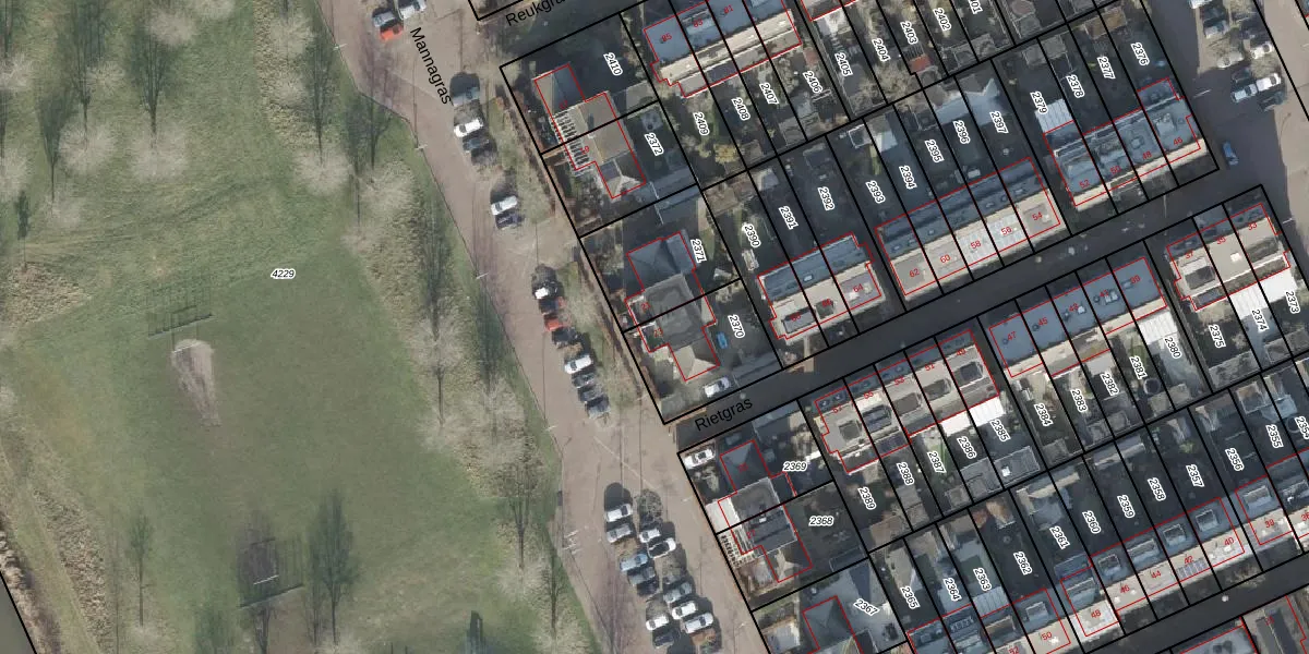 Gebruik de zoekbalk of klik op een perceel voor informatie over de adressen binnen dit perceel.