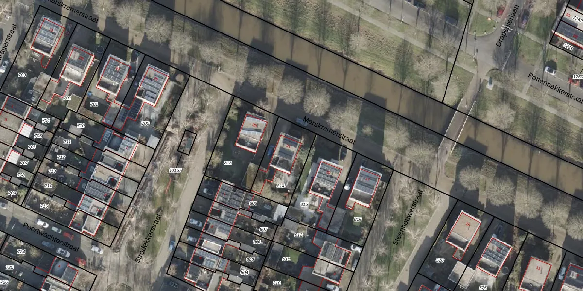 Het perceel waarop Marskramerstraat 21 staat heeft een oppervlakte van 388 m². Dit is een groot perceel. De perceeloppervlakte wordt geregistreerd door het Kadaster. Gedetailleerde informatie over de maten van dit perceel kunt u vinden in het rapport Kadastrale kaart met maatvoering van Marskramerstraat 21.