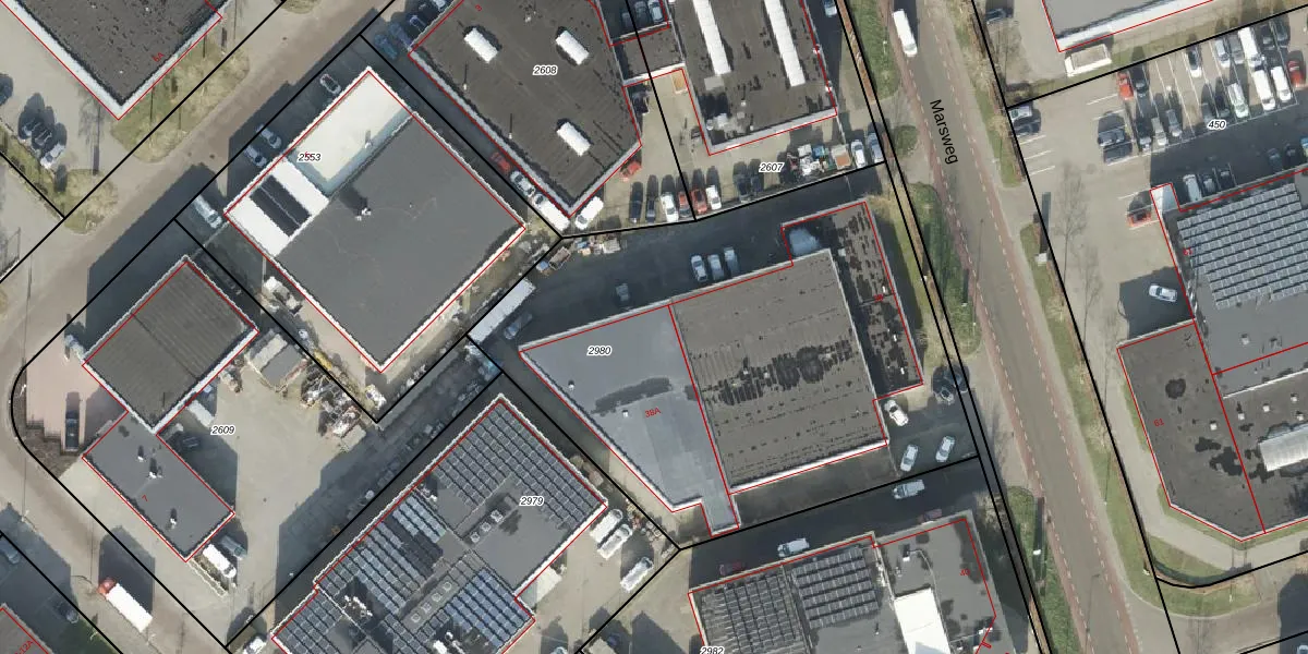 Het perceel waarop Marsweg 38-K staat heeft een oppervlakte van 2846 m². Dit is een zeer groot perceel. De perceeloppervlakte wordt geregistreerd door het Kadaster. Gedetailleerde informatie over de maten van dit perceel kunt u vinden in het rapport Kadastrale kaart met maatvoering van Marsweg 38-K.