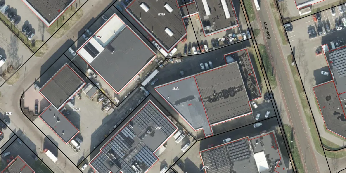 Het perceel waarop Marsweg 38-M staat heeft een oppervlakte van 2846 m². Dit is een zeer groot perceel. De perceeloppervlakte wordt geregistreerd door het Kadaster. Gedetailleerde informatie over de maten van dit perceel kunt u vinden in het rapport Kadastrale kaart met maatvoering van Marsweg 38-M.