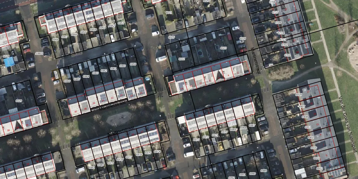 Het perceel waarop Martinetstraat 14 staat heeft een oppervlakte van 590 m². Dit is een groot perceel. De perceeloppervlakte wordt geregistreerd door het Kadaster. Gedetailleerde informatie over de maten van dit perceel kunt u vinden in het rapport Kadastrale kaart met maatvoering van Martinetstraat 14.