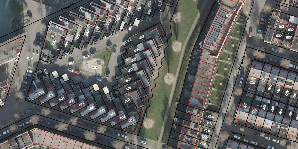 Gebruik de zoekbalk of klik op een perceel voor informatie over de adressen binnen dit perceel.