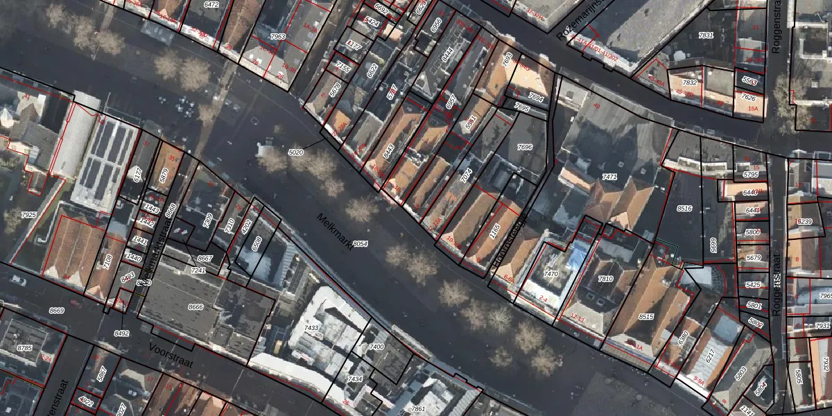 Het perceel waarop Melkmarkt 14 staat heeft een oppervlakte van 241 m². Dit is een middelgroot perceel. De perceeloppervlakte wordt geregistreerd door het Kadaster. Gedetailleerde informatie over de maten van dit perceel kunt u vinden in het rapport Kadastrale kaart met maatvoering van Melkmarkt 14.
