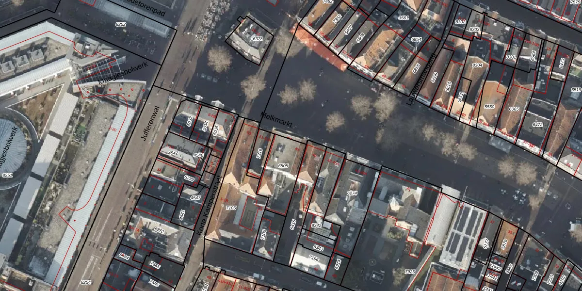 Het perceel waarop Melkmarkt 49 staat heeft een oppervlakte van 280 m². Dit is een middelgroot perceel. De perceeloppervlakte wordt geregistreerd door het Kadaster. Gedetailleerde informatie over de maten van dit perceel kunt u vinden in het rapport Kadastrale kaart met maatvoering van Melkmarkt 49.