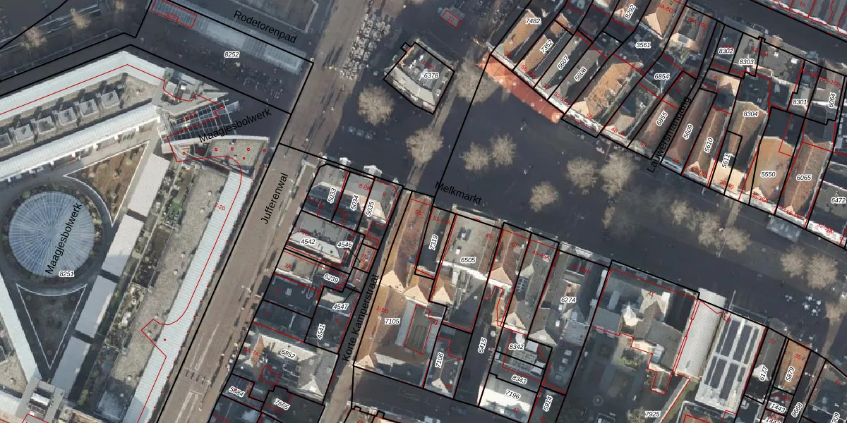 Het perceel waarop Melkmarkt 53 staat heeft een oppervlakte van 527 m². Dit is een groot perceel. De perceeloppervlakte wordt geregistreerd door het Kadaster. Gedetailleerde informatie over de maten van dit perceel kunt u vinden in het rapport Kadastrale kaart met maatvoering van Melkmarkt 53.