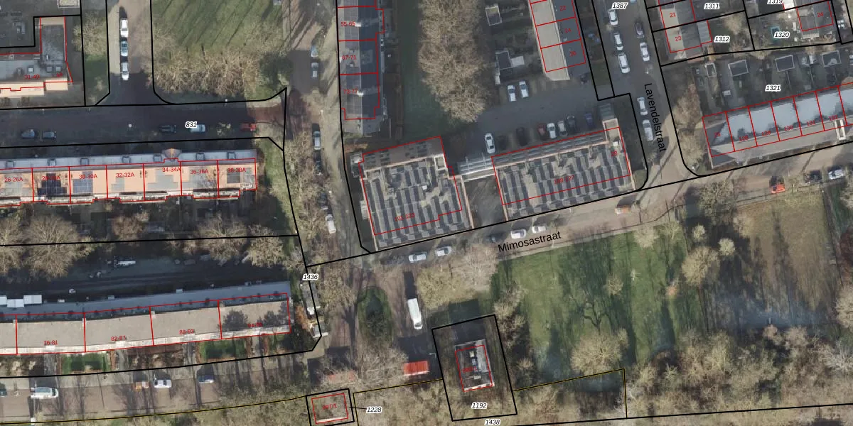 Het perceel waarop Mimosastraat 101 staat heeft een oppervlakte van 7175 m². Dit is een zeer groot perceel. De perceeloppervlakte wordt geregistreerd door het Kadaster. Gedetailleerde informatie over de maten van dit perceel kunt u vinden in het rapport Kadastrale kaart met maatvoering van Mimosastraat 101.