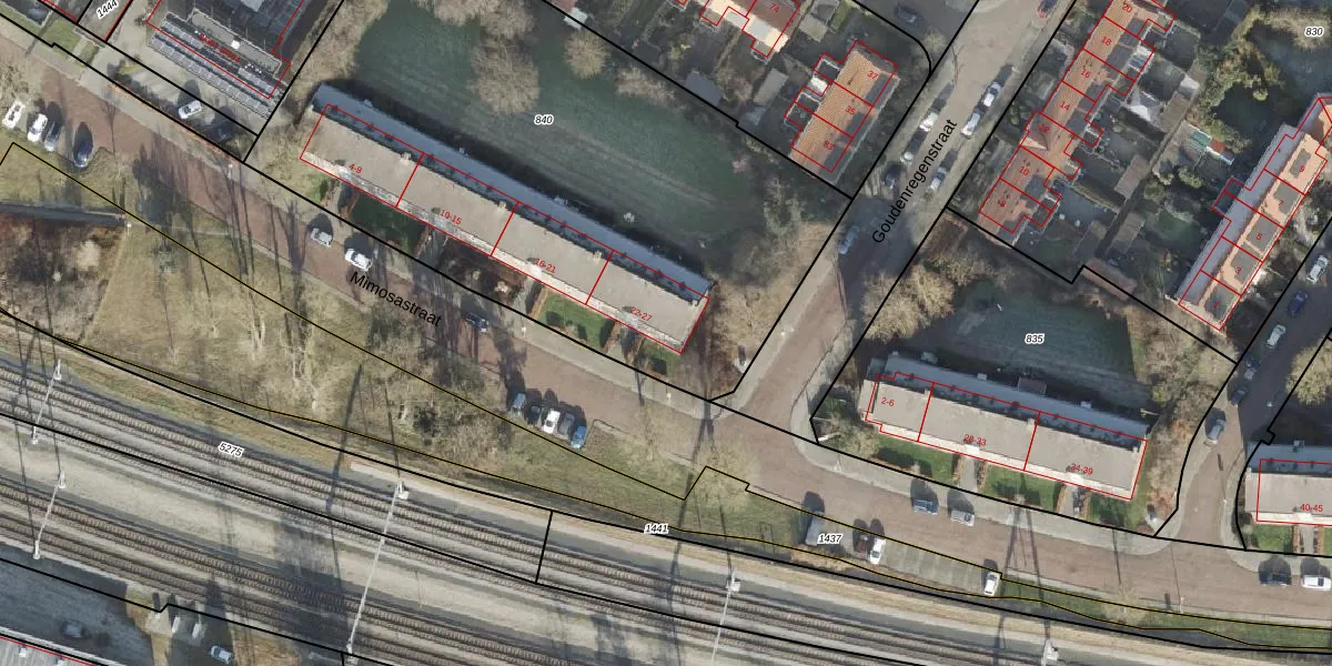 Mimosastraat 25 is gelegen op kadastraal perceel ZLE00C840. Deze kadastrale aanduiding is uniek en wordt gebruikt door het Kadaster om eigendomsrechten en andere zakelijke rechten vast te leggen. Het perceel maakt onderdeel uit van de kadastrale gemeente Zwolle.