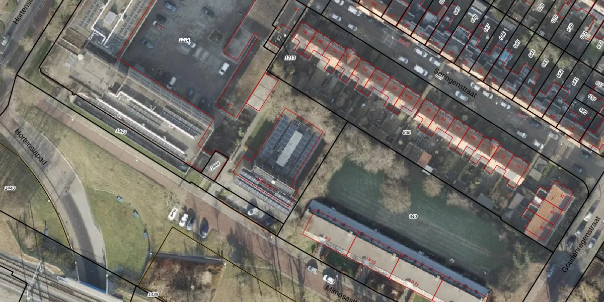 Het perceel waarop Mimosastraat 3-009 staat heeft een oppervlakte van 5294 m². Dit is een zeer groot perceel. De perceeloppervlakte wordt geregistreerd door het Kadaster. Gedetailleerde informatie over de maten van dit perceel kunt u vinden in het rapport Kadastrale kaart met maatvoering van Mimosastraat 3-009.