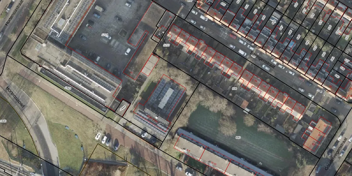 Het perceel waarop Mimosastraat 3-108 staat heeft een oppervlakte van 5294 m². Dit is een zeer groot perceel. De perceeloppervlakte wordt geregistreerd door het Kadaster. Gedetailleerde informatie over de maten van dit perceel kunt u vinden in het rapport Kadastrale kaart met maatvoering van Mimosastraat 3-108.