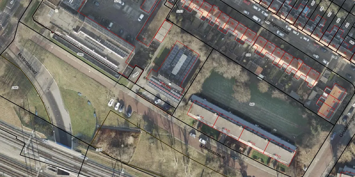 Het perceel waarop Mimosastraat 3-201 staat heeft een oppervlakte van 5294 m². Dit is een zeer groot perceel. De perceeloppervlakte wordt geregistreerd door het Kadaster. Gedetailleerde informatie over de maten van dit perceel kunt u vinden in het rapport Kadastrale kaart met maatvoering van Mimosastraat 3-201.