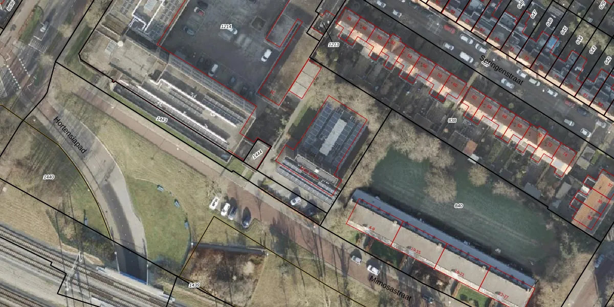 Het perceel waarop Mimosastraat 3-303 staat heeft een oppervlakte van 5294 m². Dit is een zeer groot perceel. De perceeloppervlakte wordt geregistreerd door het Kadaster. Gedetailleerde informatie over de maten van dit perceel kunt u vinden in het rapport Kadastrale kaart met maatvoering van Mimosastraat 3-303.