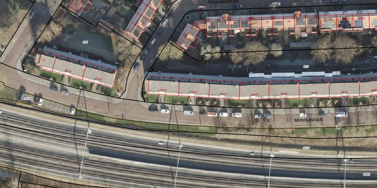 Het perceel waarop Mimosastraat 46 staat heeft een oppervlakte van 4840 m². Dit is een zeer groot perceel. De perceeloppervlakte wordt geregistreerd door het Kadaster. Gedetailleerde informatie over de maten van dit perceel kunt u vinden in het rapport Kadastrale kaart met maatvoering van Mimosastraat 46.