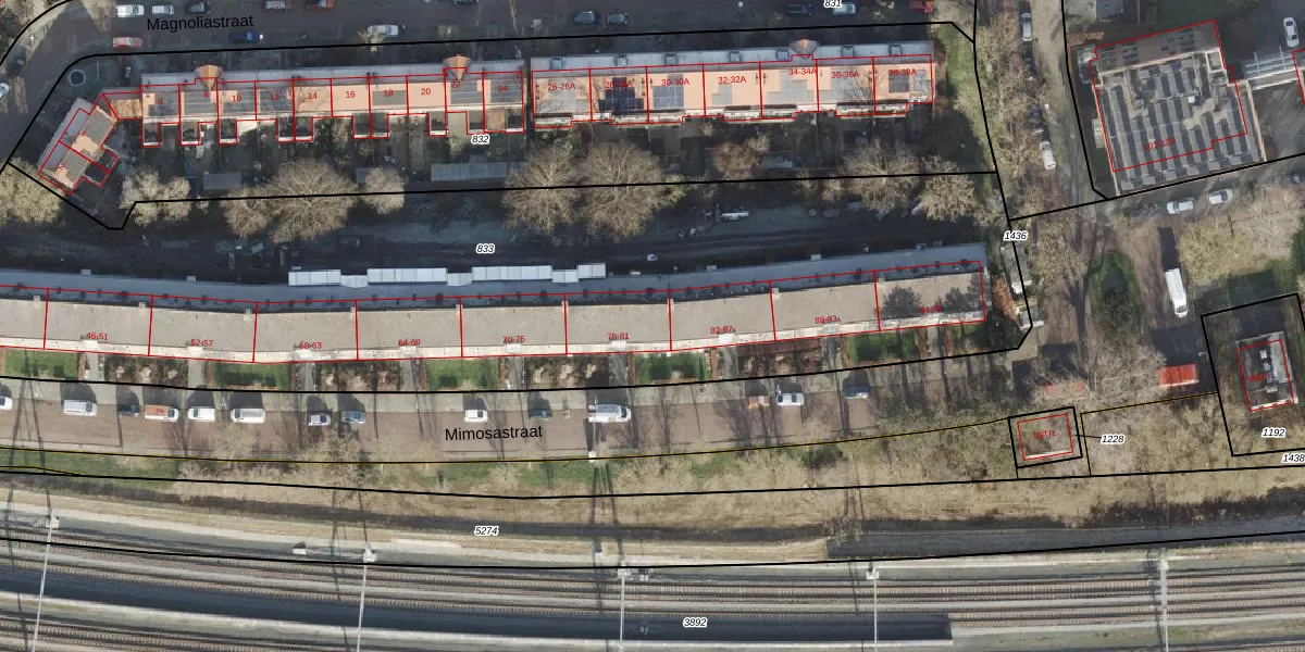 Het perceel waarop Mimosastraat 81 staat heeft een oppervlakte van 4840 m². Dit is een zeer groot perceel. De perceeloppervlakte wordt geregistreerd door het Kadaster. Gedetailleerde informatie over de maten van dit perceel kunt u vinden in het rapport Kadastrale kaart met maatvoering van Mimosastraat 81.