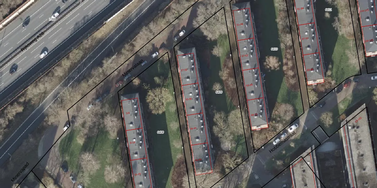 Het perceel waarop Minervalaan 33 staat heeft een oppervlakte van 2410 m². Dit is een zeer groot perceel. De perceeloppervlakte wordt geregistreerd door het Kadaster. Gedetailleerde informatie over de maten van dit perceel kunt u vinden in het rapport Kadastrale kaart met maatvoering van Minervalaan 33.