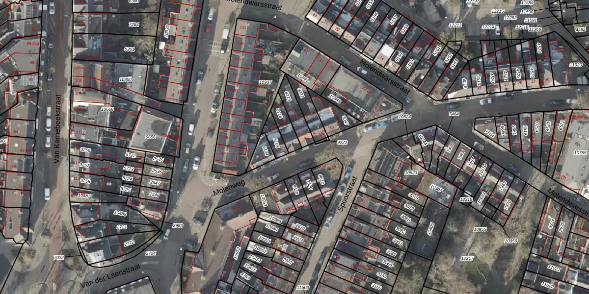 Gebruik de zoekbalk of klik op een perceel voor informatie over de adressen binnen dit perceel.