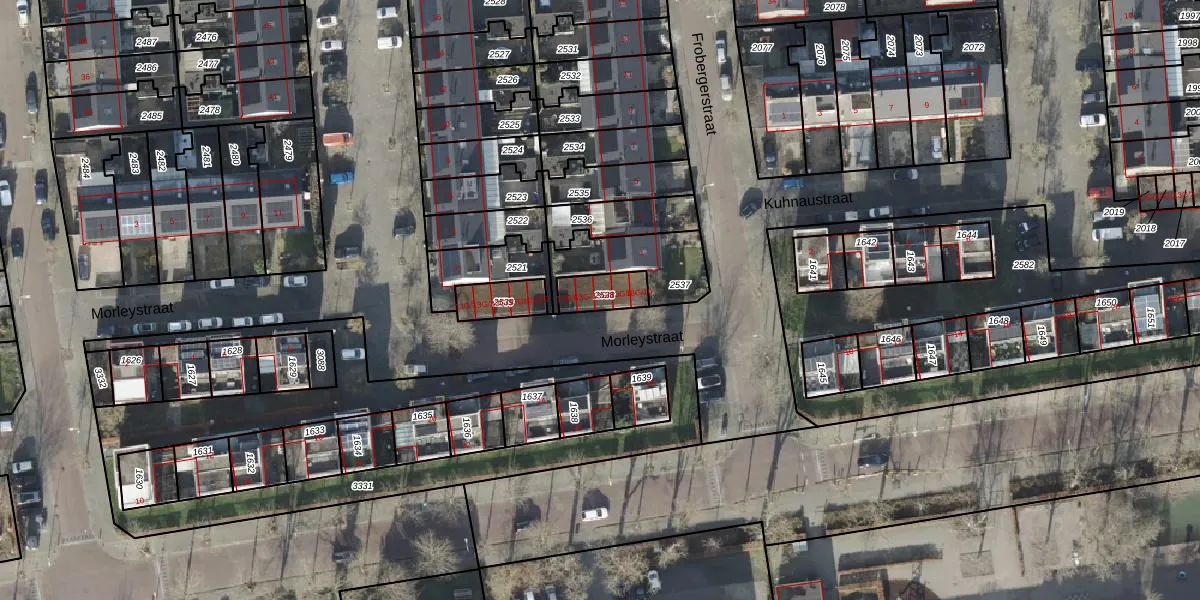 Het perceel waarop Morleystraat 13-G-8 staat heeft een oppervlakte van 90 m². Dit is een klein perceel. De perceeloppervlakte wordt geregistreerd door het Kadaster. Gedetailleerde informatie over de maten van dit perceel kunt u vinden in het rapport Kadastrale kaart met maatvoering van Morleystraat 13-G-8.