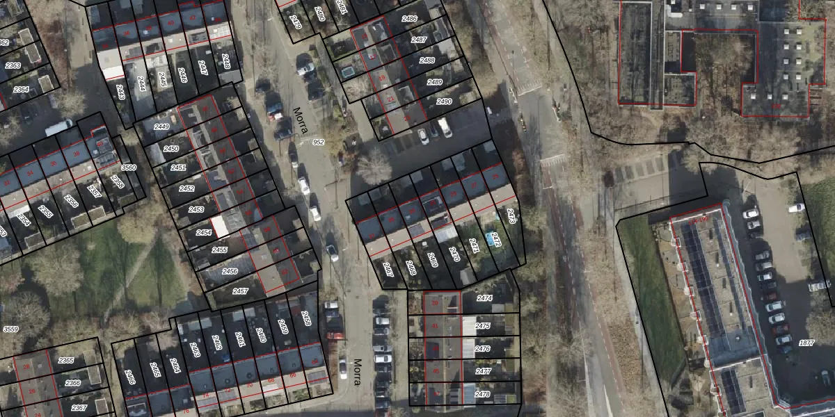 Het perceel waarop Morra 33 staat heeft een oppervlakte van 156 m². Dit is een middelgroot perceel. De perceeloppervlakte wordt geregistreerd door het Kadaster. Gedetailleerde informatie over de maten van dit perceel kunt u vinden in het rapport Kadastrale kaart met maatvoering van Morra 33.