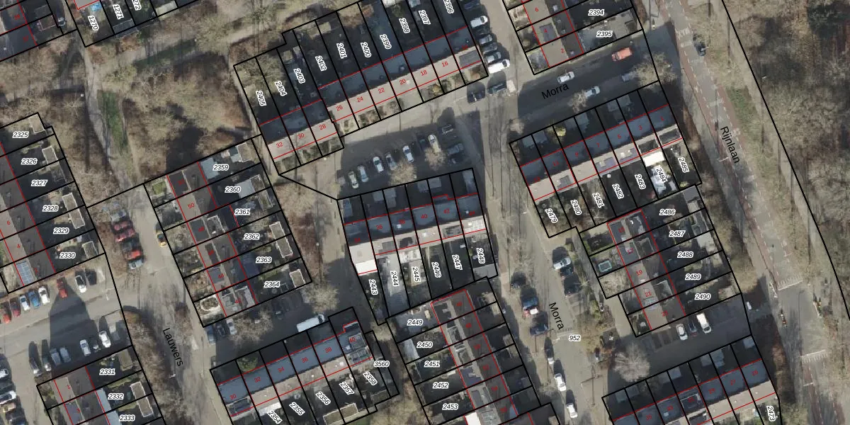 Gebruik de zoekbalk of klik op een perceel voor informatie over de adressen binnen dit perceel.