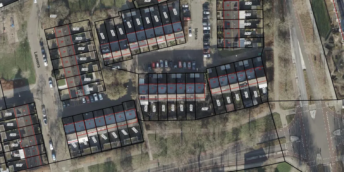 Gebruik de zoekbalk of klik op een perceel voor informatie over de adressen binnen dit perceel.