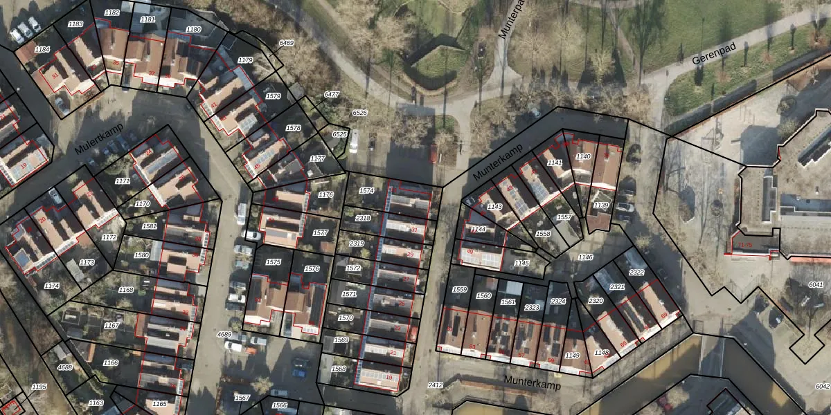Het perceel waarop Munterkamp 33 staat heeft een oppervlakte van 188 m². Dit is een middelgroot perceel. De perceeloppervlakte wordt geregistreerd door het Kadaster. Gedetailleerde informatie over de maten van dit perceel kunt u vinden in het rapport Kadastrale kaart met maatvoering van Munterkamp 33.