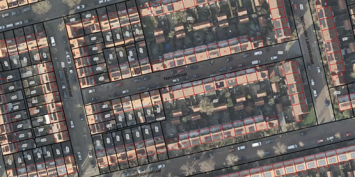 Het perceel waarop Narcisstraat 14 staat heeft een oppervlakte van 3382 m². Dit is een zeer groot perceel. De perceeloppervlakte wordt geregistreerd door het Kadaster. Gedetailleerde informatie over de maten van dit perceel kunt u vinden in het rapport Kadastrale kaart met maatvoering van Narcisstraat 14.