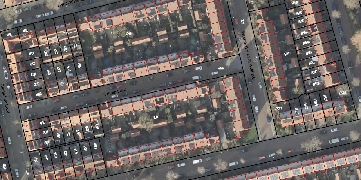Het perceel waarop Narcisstraat 26 staat heeft een oppervlakte van 3382 m². Dit is een zeer groot perceel. De perceeloppervlakte wordt geregistreerd door het Kadaster. Gedetailleerde informatie over de maten van dit perceel kunt u vinden in het rapport Kadastrale kaart met maatvoering van Narcisstraat 26.