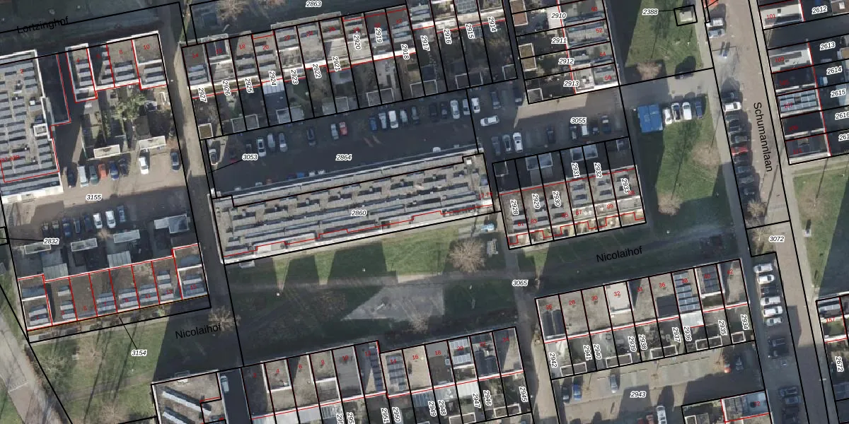 Het perceel waarop Nicolaihof 21 staat heeft een oppervlakte van 863 m². Dit is een groot perceel. De perceeloppervlakte wordt geregistreerd door het Kadaster. Gedetailleerde informatie over de maten van dit perceel kunt u vinden in het rapport Kadastrale kaart met maatvoering van Nicolaihof 21.