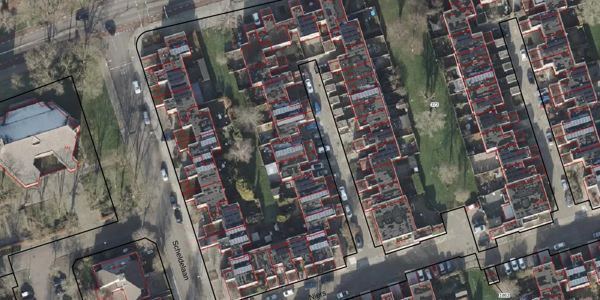 Het perceel waarop Niers 17 staat heeft een oppervlakte van 1,5 ha. Dit is een zeer groot perceel. De perceeloppervlakte wordt geregistreerd door het Kadaster. Gedetailleerde informatie over de maten van dit perceel kunt u vinden in het rapport Kadastrale kaart met maatvoering van Niers 17.
