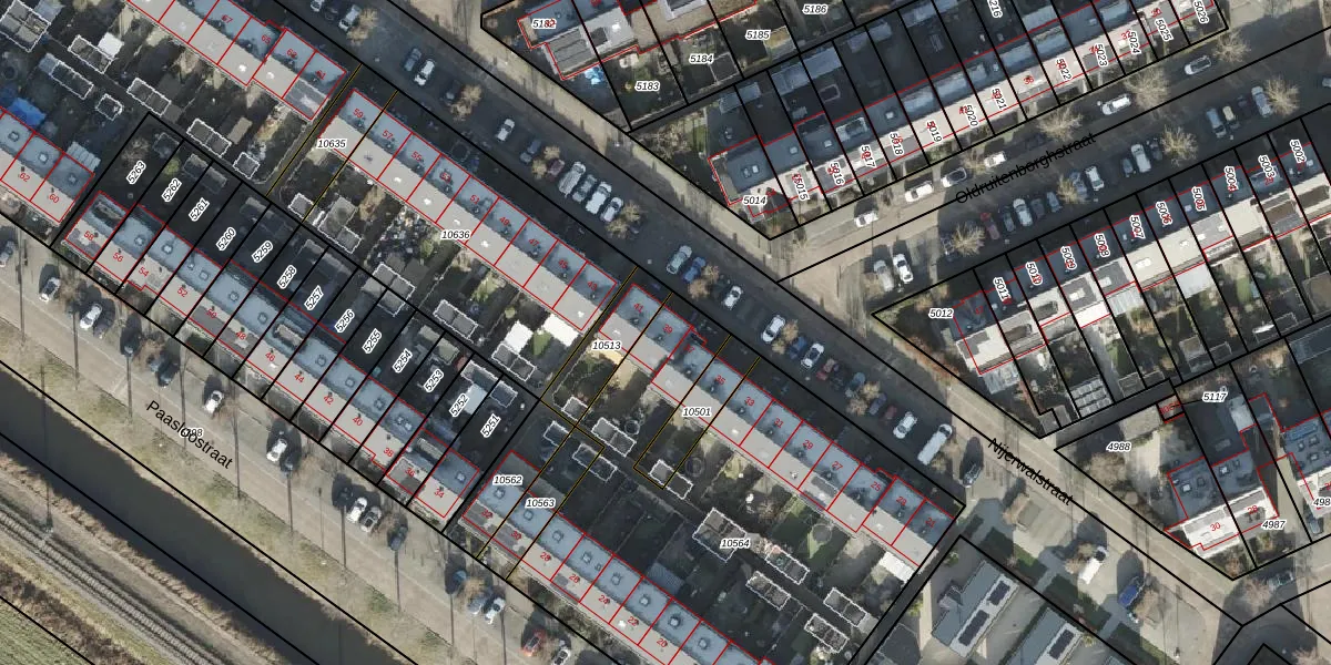 Het perceel waarop Nijerwalstraat 39 staat heeft een oppervlakte van 2449 m². Dit is een zeer groot perceel. De perceeloppervlakte wordt geregistreerd door het Kadaster. Gedetailleerde informatie over de maten van dit perceel kunt u vinden in het rapport Kadastrale kaart met maatvoering van Nijerwalstraat 39.