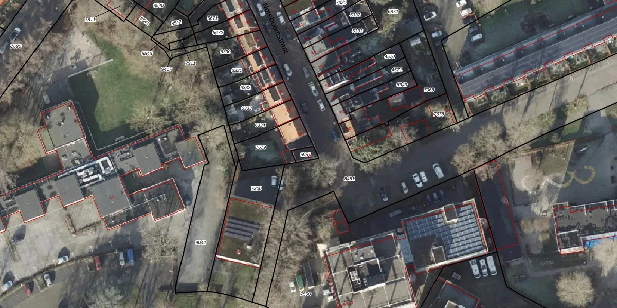 Gebruik de zoekbalk of klik op een perceel voor informatie over de adressen binnen dit perceel.