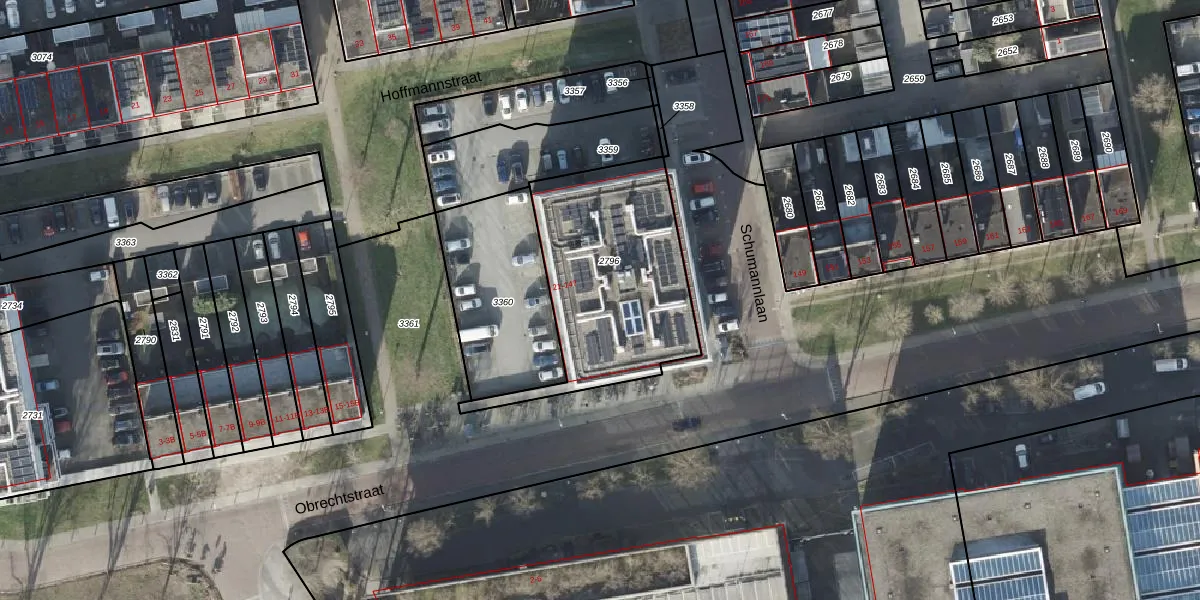 Het perceel waarop Obrechtstraat 39 staat heeft een oppervlakte van 834 m². Dit is een groot perceel. De perceeloppervlakte wordt geregistreerd door het Kadaster. Gedetailleerde informatie over de maten van dit perceel kunt u vinden in het rapport Kadastrale kaart met maatvoering van Obrechtstraat 39.