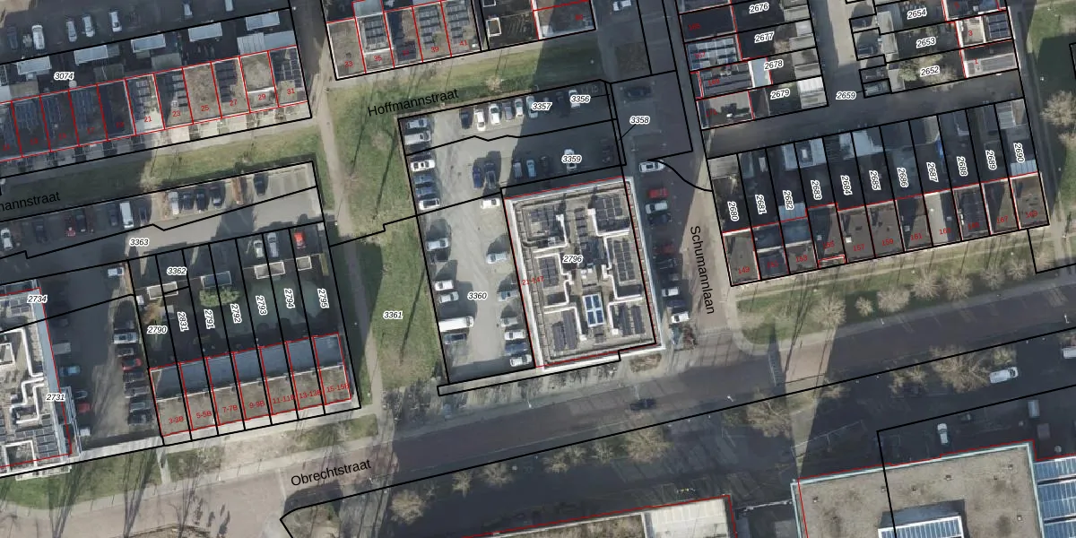 Het perceel waarop Obrechtstraat 89 staat heeft een oppervlakte van 834 m². Dit is een groot perceel. De perceeloppervlakte wordt geregistreerd door het Kadaster. Gedetailleerde informatie over de maten van dit perceel kunt u vinden in het rapport Kadastrale kaart met maatvoering van Obrechtstraat 89.