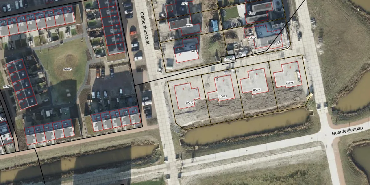 Gebruik de zoekbalk of klik op een perceel voor informatie over de adressen binnen dit perceel.