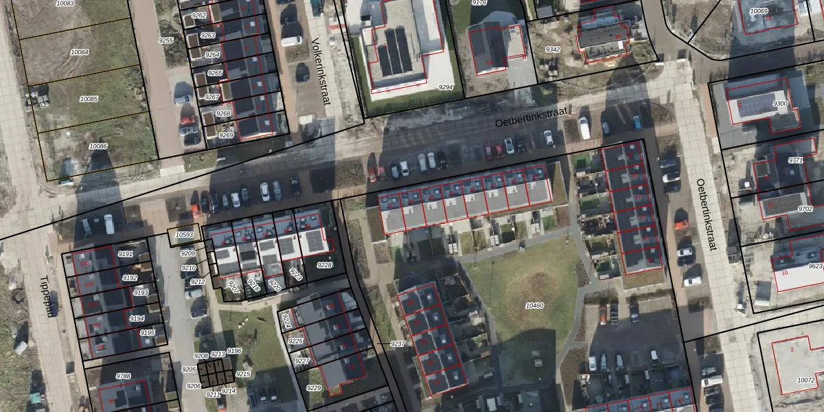 Het perceel waarop Oetbertinkstraat 45 staat heeft een oppervlakte van 5245 m². Dit is een zeer groot perceel. De perceeloppervlakte wordt geregistreerd door het Kadaster. Gedetailleerde informatie over de maten van dit perceel kunt u vinden in het rapport Kadastrale kaart met maatvoering van Oetbertinkstraat 45.