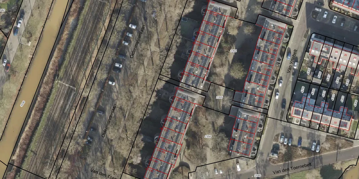 Oldermannenlaan 233 is gelegen op kadastraal perceel ZLE00L2356. Deze kadastrale aanduiding is uniek en wordt gebruikt door het Kadaster om eigendomsrechten en andere zakelijke rechten vast te leggen. Het perceel maakt onderdeel uit van de kadastrale gemeente Zwolle.