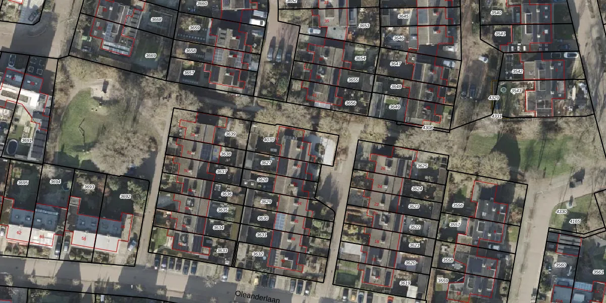 Het perceel waarop Oleanderlaan 28 staat heeft een oppervlakte van 300 m². Dit is een groot perceel. De perceeloppervlakte wordt geregistreerd door het Kadaster. Gedetailleerde informatie over de maten van dit perceel kunt u vinden in het rapport Kadastrale kaart met maatvoering van Oleanderlaan 28.