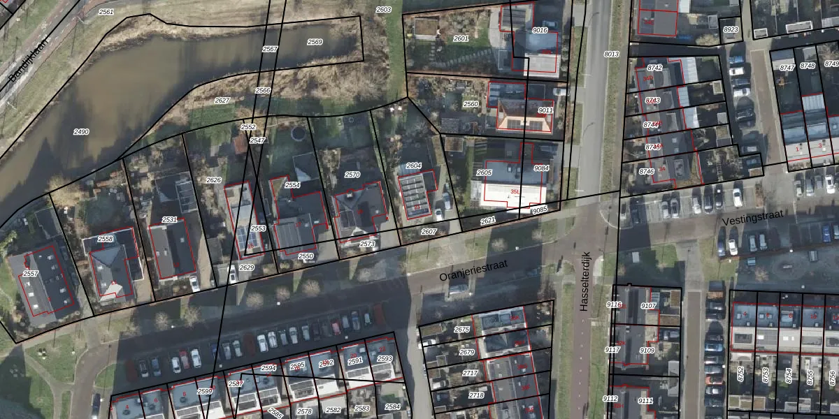 Oranjeriestraat 21 is gelegen op kadastraal perceel ZLK00O2604. Deze kadastrale aanduiding is uniek en wordt gebruikt door het Kadaster om eigendomsrechten en andere zakelijke rechten vast te leggen. Het perceel maakt onderdeel uit van de kadastrale gemeente Zwollerkerspel.