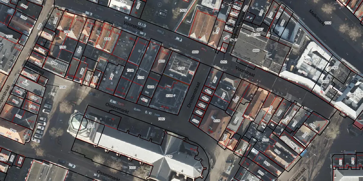 Het perceel waarop Ossenmarkt 10-C staat heeft een oppervlakte van 310 m². Dit is een groot perceel. De perceeloppervlakte wordt geregistreerd door het Kadaster. Gedetailleerde informatie over de maten van dit perceel kunt u vinden in het rapport Kadastrale kaart met maatvoering van Ossenmarkt 10-C.