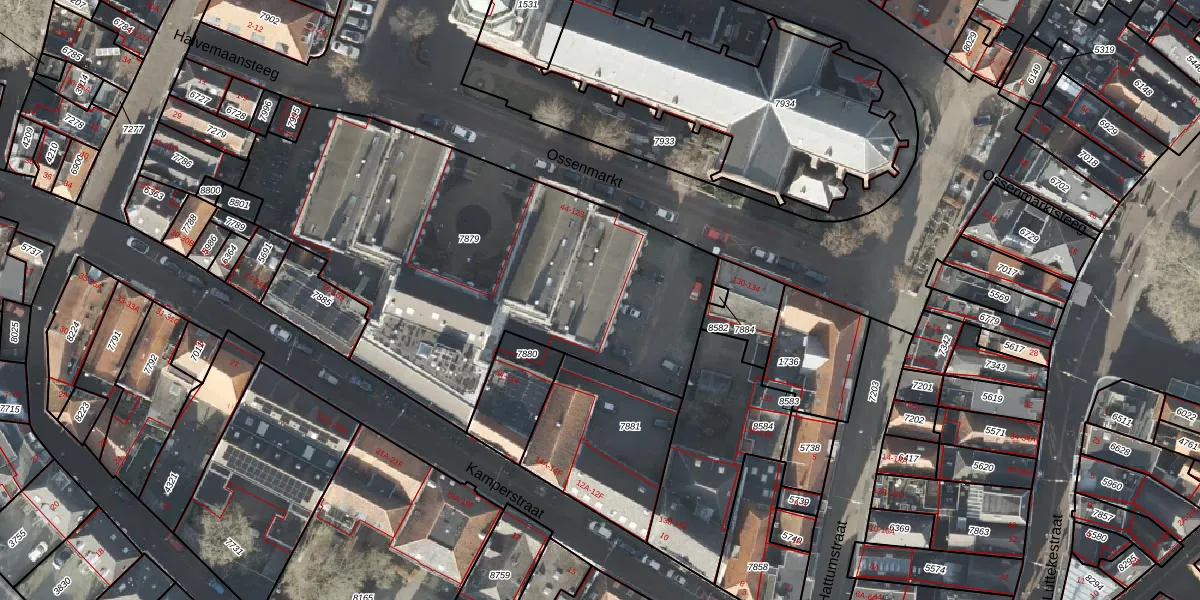 Ossenmarkt 103 is gelegen op kadastraal perceel ZLE00F7879. Deze kadastrale aanduiding is uniek en wordt gebruikt door het Kadaster om eigendomsrechten en andere zakelijke rechten vast te leggen. Het perceel maakt onderdeel uit van de kadastrale gemeente Zwolle.