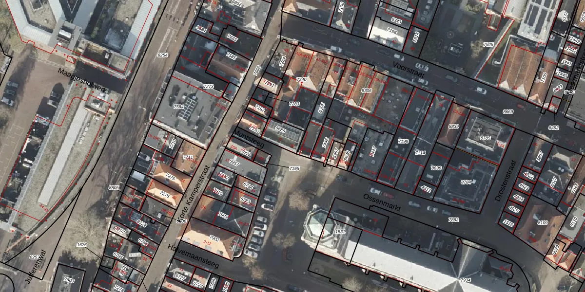 Het perceel waarop Ossenmarkt 20 staat heeft een oppervlakte van 98 m². Dit is een klein perceel. De perceeloppervlakte wordt geregistreerd door het Kadaster. Gedetailleerde informatie over de maten van dit perceel kunt u vinden in het rapport Kadastrale kaart met maatvoering van Ossenmarkt 20.