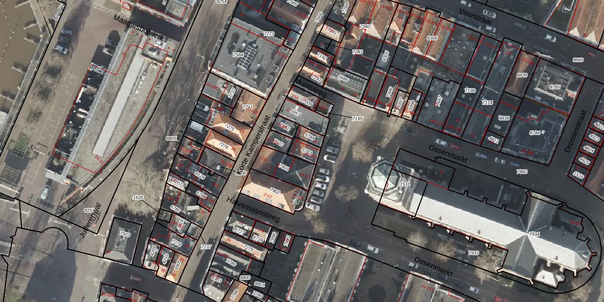 Het perceel waarop Ossenmarkt 25-A staat heeft een oppervlakte van 57 m². Dit is een klein perceel. De perceeloppervlakte wordt geregistreerd door het Kadaster. Gedetailleerde informatie over de maten van dit perceel kunt u vinden in het rapport Kadastrale kaart met maatvoering van Ossenmarkt 25-A.