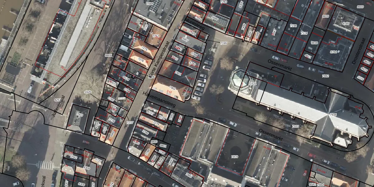Het perceel waarop Ossenmarkt 29 staat heeft een oppervlakte van 185 m². Dit is een middelgroot perceel. De perceeloppervlakte wordt geregistreerd door het Kadaster. Gedetailleerde informatie over de maten van dit perceel kunt u vinden in het rapport Kadastrale kaart met maatvoering van Ossenmarkt 29.