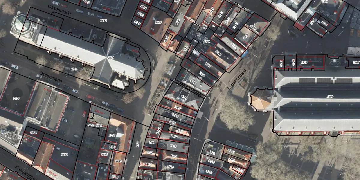 Het perceel waarop Ossenmarkt 5-D staat heeft een oppervlakte van 172 m². Dit is een middelgroot perceel. De perceeloppervlakte wordt geregistreerd door het Kadaster. Gedetailleerde informatie over de maten van dit perceel kunt u vinden in het rapport Kadastrale kaart met maatvoering van Ossenmarkt 5-D.