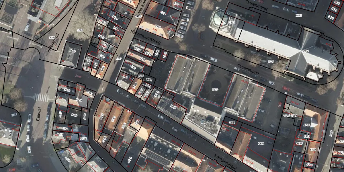 Het perceel waarop Ossenmarkt 60 staat heeft een oppervlakte van 2328 m². Dit is een zeer groot perceel. De perceeloppervlakte wordt geregistreerd door het Kadaster. Gedetailleerde informatie over de maten van dit perceel kunt u vinden in het rapport Kadastrale kaart met maatvoering van Ossenmarkt 60.