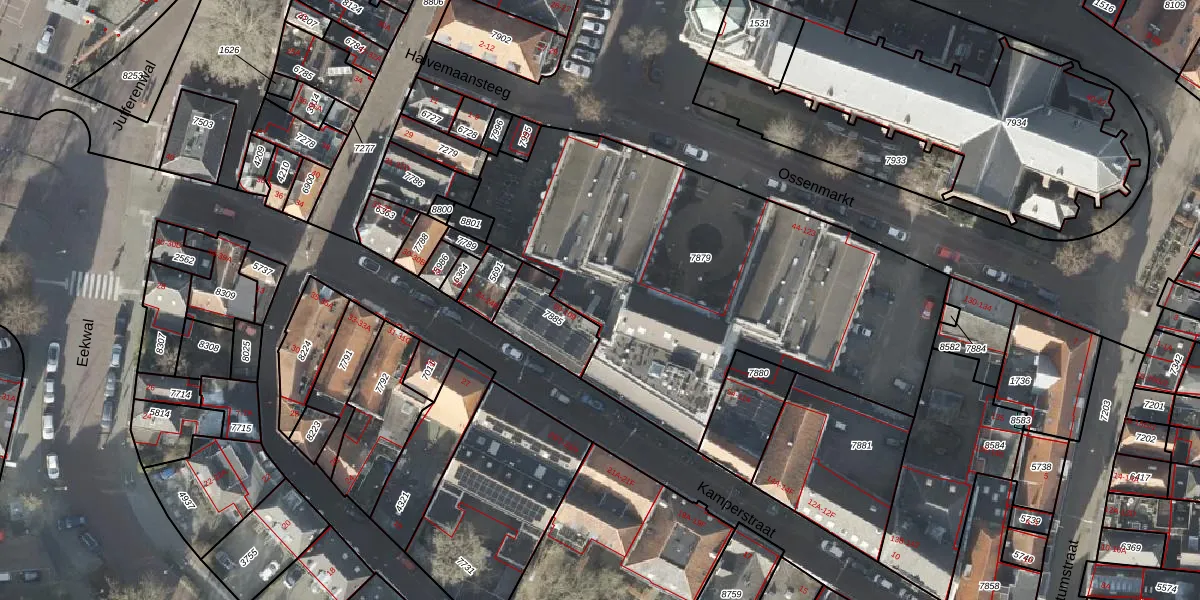 Het perceel waarop Ossenmarkt 68 staat heeft een oppervlakte van 2328 m². Dit is een zeer groot perceel. De perceeloppervlakte wordt geregistreerd door het Kadaster. Gedetailleerde informatie over de maten van dit perceel kunt u vinden in het rapport Kadastrale kaart met maatvoering van Ossenmarkt 68.