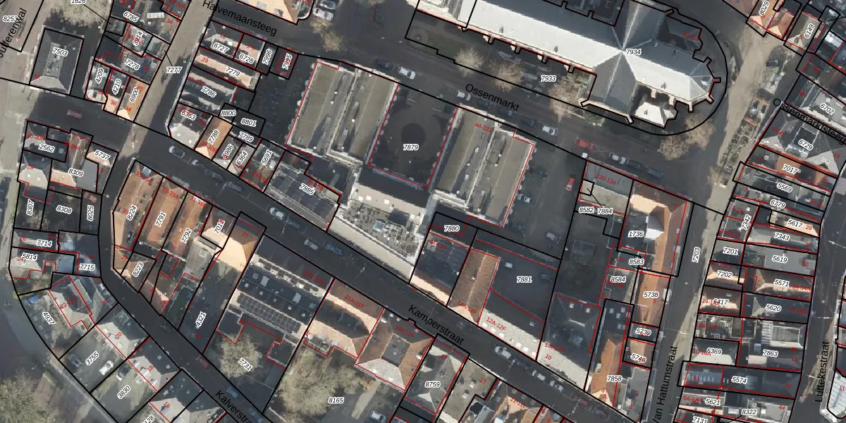 Ossenmarkt 77 is gelegen op kadastraal perceel ZLE00F7879. Deze kadastrale aanduiding is uniek en wordt gebruikt door het Kadaster om eigendomsrechten en andere zakelijke rechten vast te leggen. Het perceel maakt onderdeel uit van de kadastrale gemeente Zwolle.